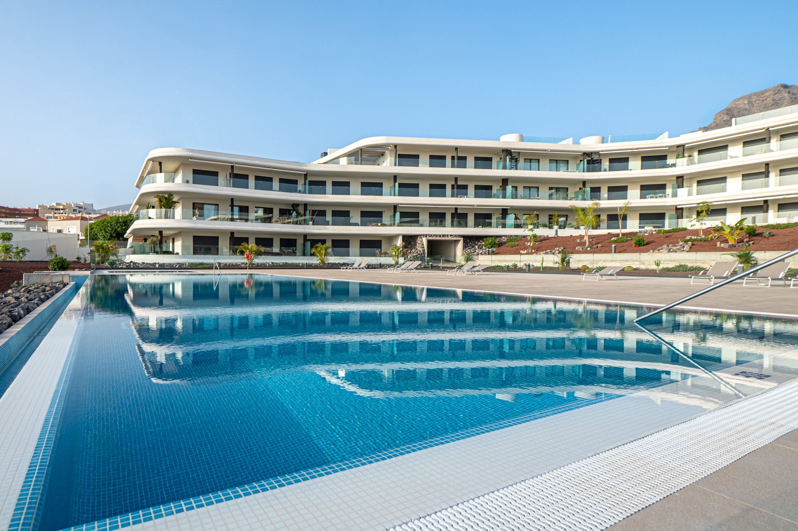 Guests particularly enjoy the beautiful communal areas, which include landscaped gardens, several swimming pools — including one for children — and plenty of sun loungers for relaxing in the Tenerife sunshine.